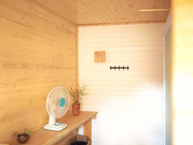 就连竹本木南先生最爱的作品之一竹制太阳能电扇也作为竹房的实用家居及装饰。(设计制作于2012年)
