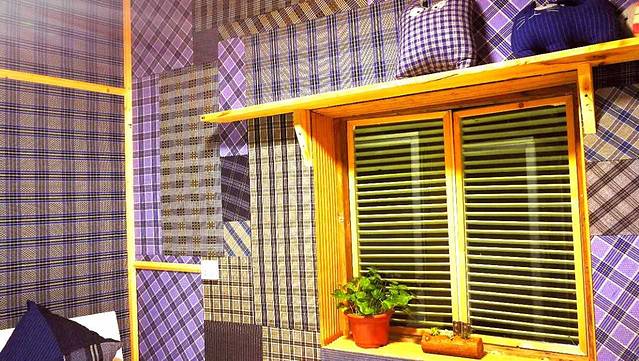 布房不大,但摆放合理,印花蓝土布被铺在实木床上,让人赏心悦目,很想好好睡一觉。