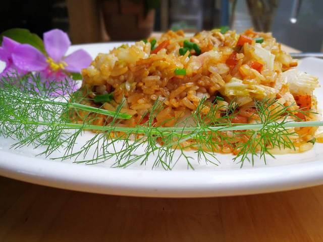 厨房的灶台已看不出原来的模样,一缕缕阳光透过屋顶照进来,屋内种的的韭菜、番茄、黄瓜、薄荷显得格外兴奋,美滋滋的沐浴着暖暖的阳光充满生机。高温天气在这样的厨房里做饭,整个人都凉爽起来了。