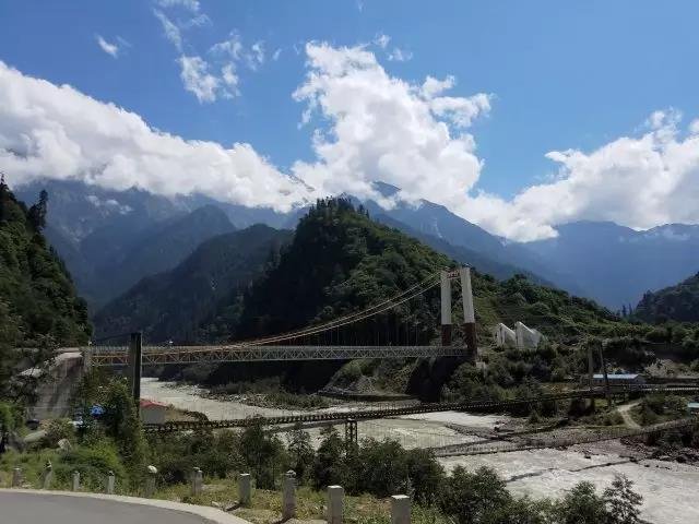 通麦大桥是川藏公路318国道的咽喉工程,是一座临时保通性工程。全长258米,主跨为210米,高31.5米。我们影子领队好像很喜欢它给它各个角度都拍了照片。那就让我们好好欣赏一下它的大作吧。