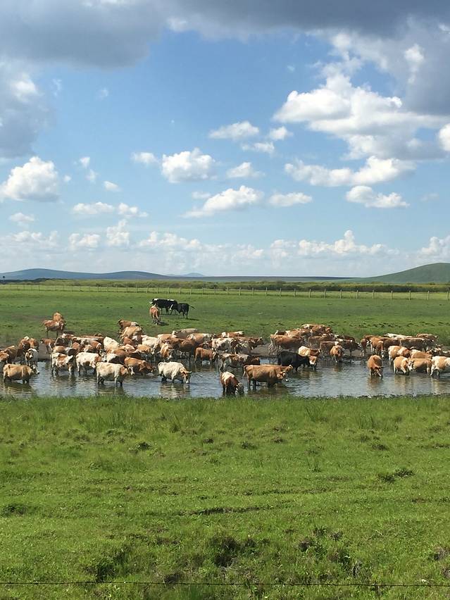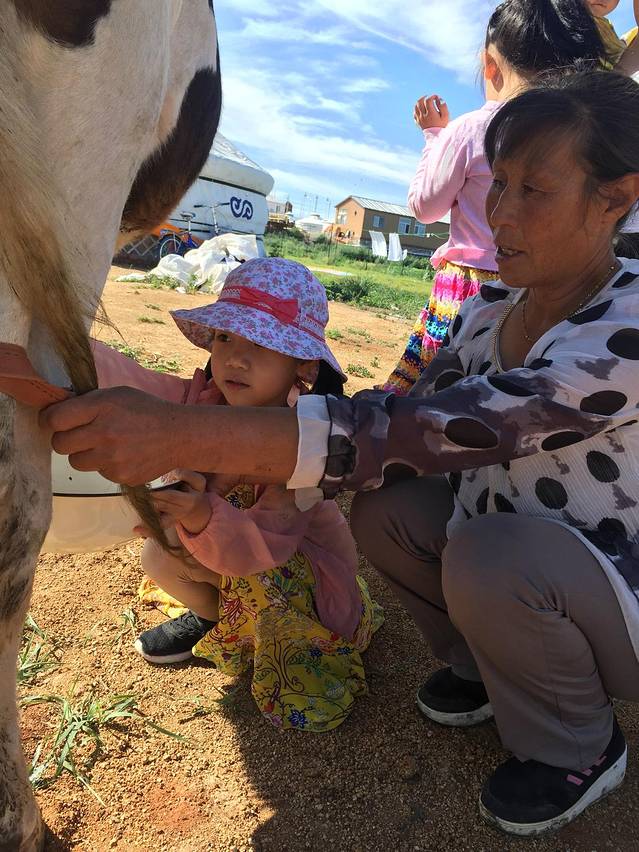 如要看日出的话最好在2点半出发,4点的时候太阳已高高挂起,清晨的草原特别冷,要穿上厚一点的外套,日出之后可以选择再睡会儿,然后小朋友在楚姐带领下喂小绵羊,边喂边听“跪乳之恩”成语的故事,非常有意义,喂完小羊羔后我们就来挤牛奶,小朋友玩得不亦乐乎。早餐后,我们就在主人家的带头去她家的私人牧场,就在分界河边四卡范围这里简直就是人间天空,随便一拍相片就可以当屏保了,我们在这里开拖拉机,划小船越界,捕捉小鱼,摘野菜,河水清澈到底,多少小条都可以数到,鱼儿特别甜,在这里我们可以自由奔跑(因为不对外开放也不是旅游地区,特别宁静,戴上太阳镜躺在草地上感觉白云就在头顶上飘过特别近。
