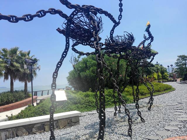 岛上随处可见各式卡通造型的白海豚雕像,要知道厦门湾这里是中华白海豚的主要栖息地,所以在岛上如果运气好的话说不定能在海上看到这种美丽的小精灵。站在海岸边可以清楚的看到对岸的厦门,此刻对岸的都市繁华与岛上的恬静舒适形成了鲜明的对比。