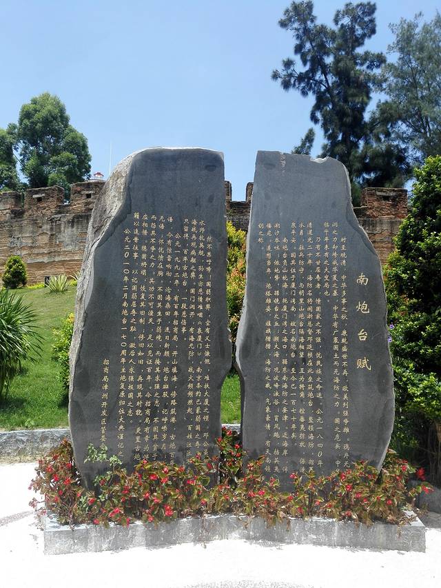 南炮台坐落在漳州开发区石坑社区屿仔尾东南临海突出部的镜台山上,故又叫屿仔尾炮台。炮台濒临东海,紧靠大陆,居高临下,雄视万里海疆。它与厦门岛上的胡里山炮台南北对峙,互为犄角,扼守着厦门海口,拱卫着祖国东南大门,素有“天南锁钥”之称。