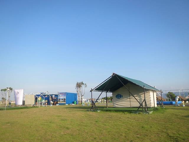 从卡达凯斯出来在路口搭乘1路车就可以经过黄金海岸然后到达厦门湾站台,从这边搭乘接驳车就可以去到双鱼岛。说到双鱼岛估计大家首先想到的就是马尔代夫那个,其实在漳州港这边也有一个双鱼岛。,这是我国首例大型的离岸式人工岛,人工填出来的海岛想想都好厉害的说。我这次行程的主要目的地也是来这边,这边开发的还不算非常完善,主要的娱乐活动就是露营烧烤和泡泡海水,对于过惯了忙碌的都市生活的我们不失为是一个很好的放松方法。