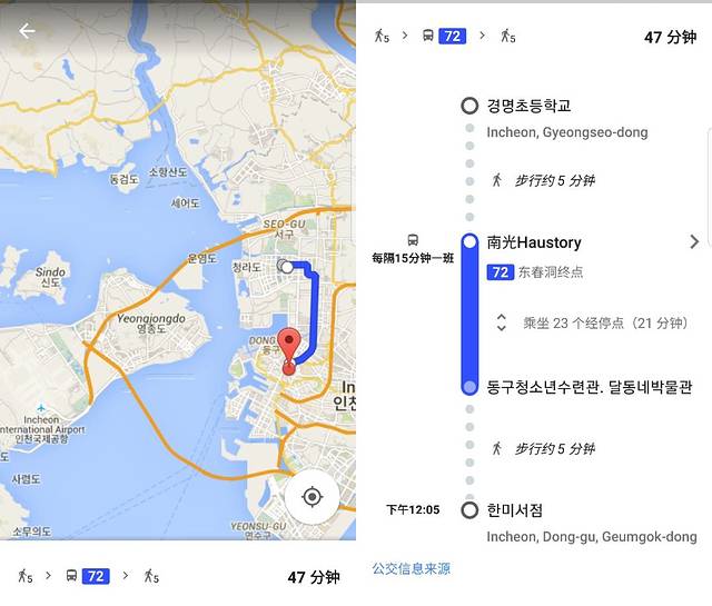 接下来的路线就比较曲折了~回到刚才我们下车的地方继续搭2-1号公车坐4站到중흥S클레스 下车换成306号巴士。楼主由于数学不好,结果多坐一站多走了5分钟555~不过还好不是很远~这里要注意的是下车后,一定要去对面坐车~还好楼主有注意方向,不然不知道要开去哪里了(哈哈哈机智如我~)上车之后11站在배다리청과물시장 (这里不知道要怎么翻译)下车。这里可能要数的站比较多~如果会韩文的小伙伴听韩文,不会韩文的小伙伴尽量数一下站哈避免做错站,仁川这里真的路上没什么人,路上想要找个人问问路也找不着哈哈~就算找到个人那个人也不一定会英文呀~~
