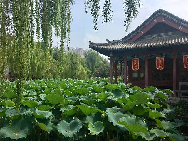 大明湖里到处都是垂柳和荷花,我就喜欢这种休闲的地方😄