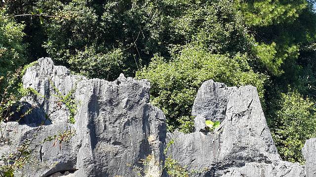 这是一处典型的喀斯特地貌,发育了众多的怪石、奇峰和异洞。鳞隐石林富有特色:地上石林,地下迷宫;得天独厚,鬼斧神工,为华东独有,全国第二。景区内耸立着石芽、石锥、石柱、石笋400多座,最高36米。怪石拟人状物,千姿百态。景点有:三鼎岩、望天星、八戒照镜、接笋峰、石猿抱桃、黑熊护笋、石龟探洞、接吻石、鳞隐书院等50多处