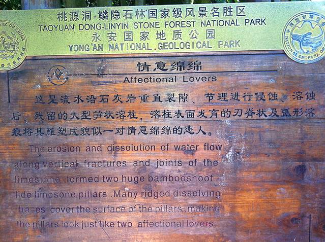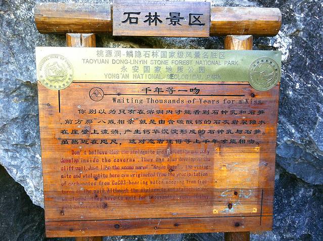 永安石林规模仅次于云南麓南石林,号称"全国第二"。石林属岩溶喀斯特地貌,外景多姿壮观,似天然盆景,内景似地下谜宫,侧景则秀丽别致。有"天然石头动物园"之美称的石林景区的标志性景点美猴抱桃,形象逼真,常令游人叹为观止。