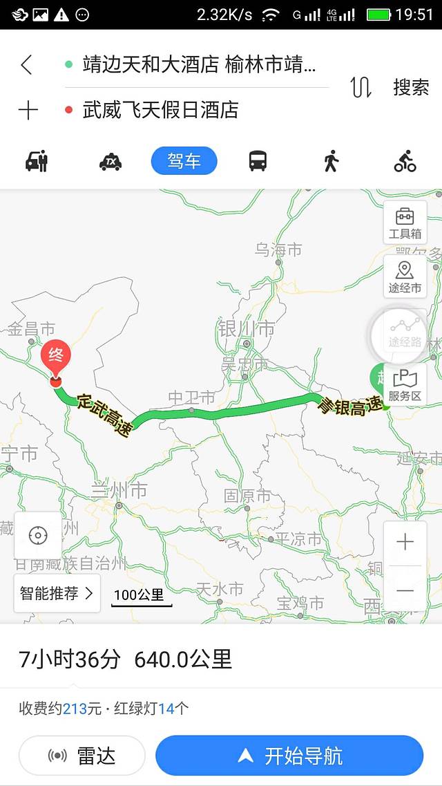 第一天只是赶路,最终到达陕西省靖边县。根据时间早晚安排榆林市吃晚饭或者直接到靖边县吃晚饭,由大家商量决定。晚上入住靖边天和大酒店