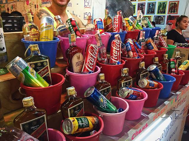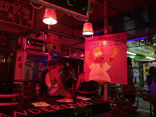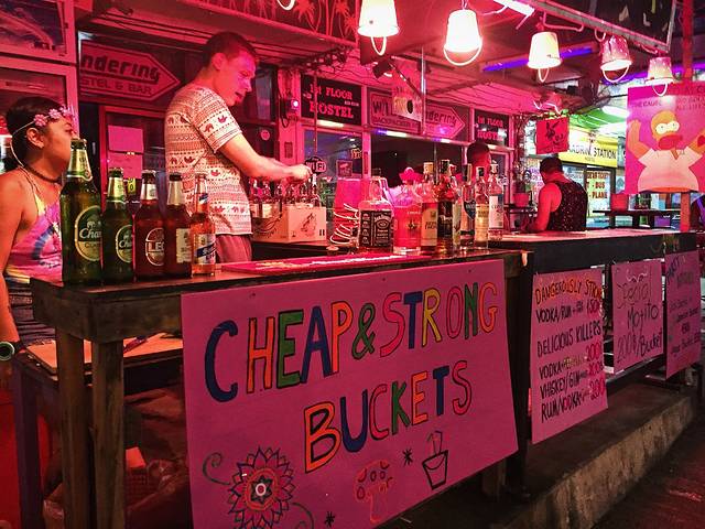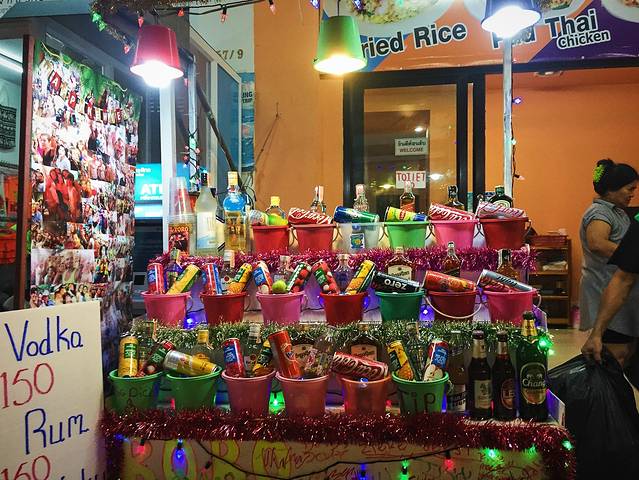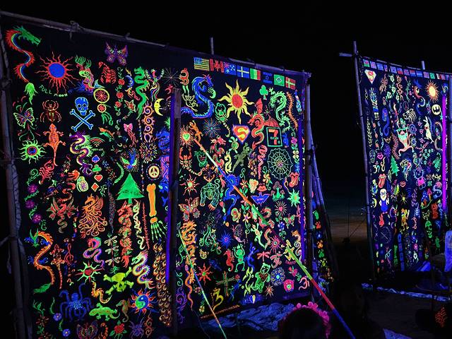 走到深处一些会发现很多店铺是买酒桶就可以免费提供荧光颜料,动手能力强的人可以选择自己画纹身,不需要花钱找人画~