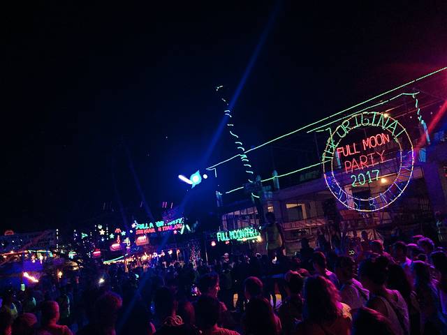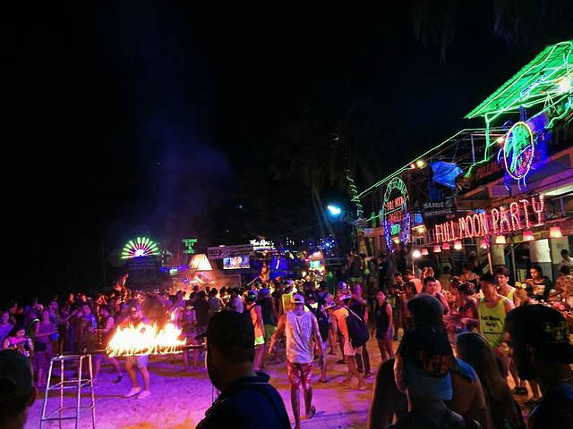 很幸运,我们到达的第一天就碰上了岛上每月一度的Full Moon Party,据说是世界三大狂欢之一,当然要体验一发!