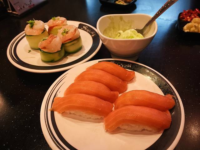 寿司可以任意下单,选择很多,而且竟然出乎意料的不错吃。