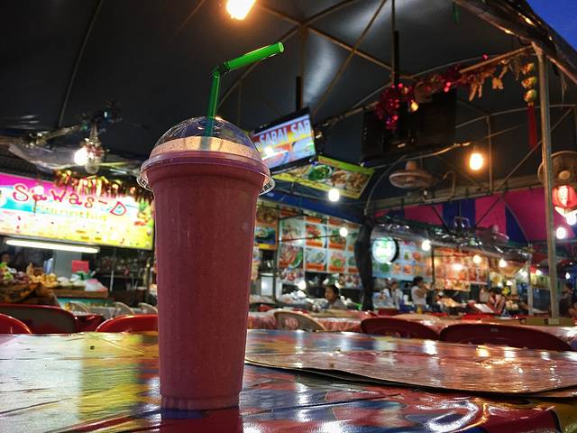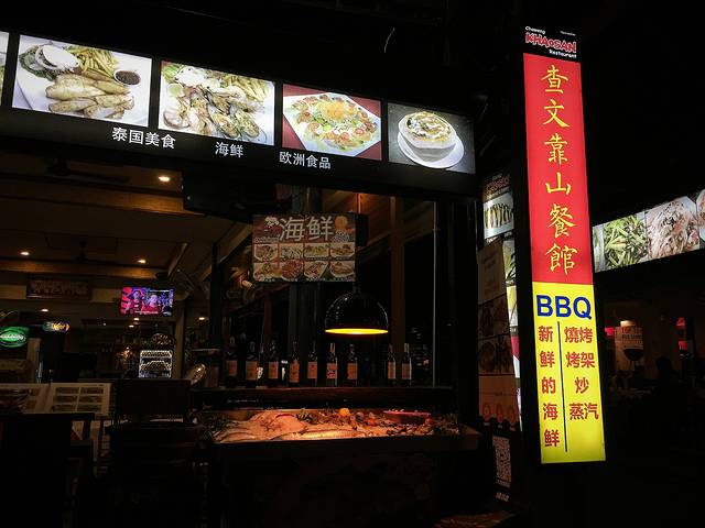 查汶夜市其实面积不大,主要是果汁、小吃,还有很多很多的BBQ、海鲜大排档,门口都有服务生招揽客人,而且基本都会说几句万能的揽客中文。“吃了吗”“看看海鲜”“便宜便宜”~