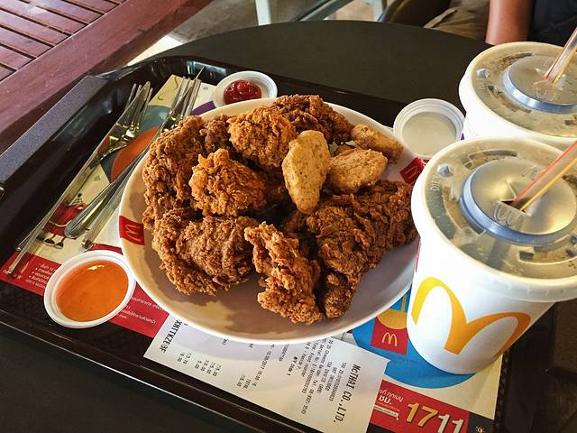 硕大无朋的炸鸡块……不过说实话淀粉太多了,味道还不如国内……环境和服务也不怎么样……所以来到还是乖乖吃当地餐厅吧,别来吃M记了。