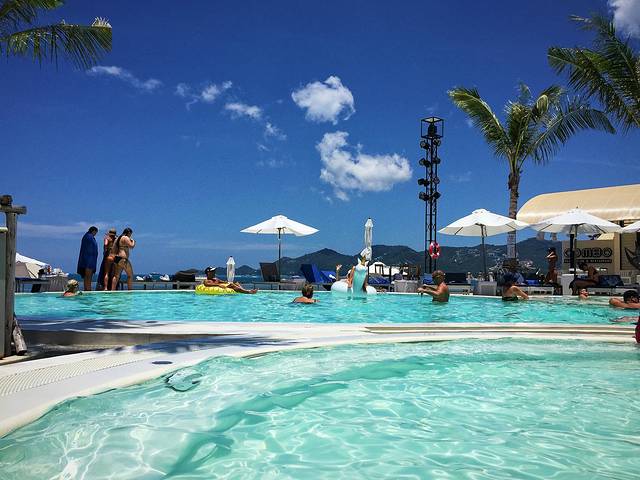 一觉睡到中午,来酒店泳池边溜达一圈。