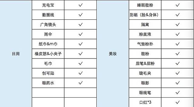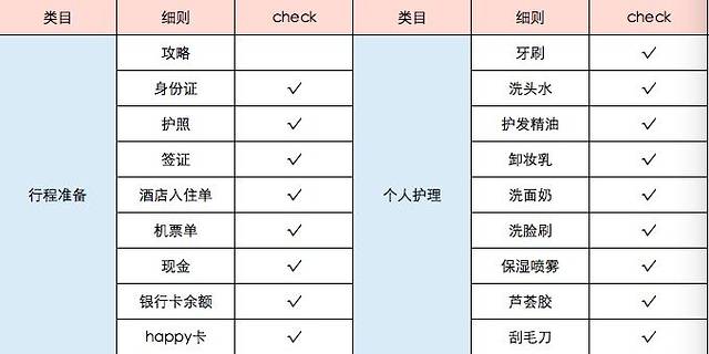 以下是我在出发前做的行李check list,供参考~