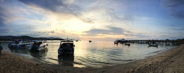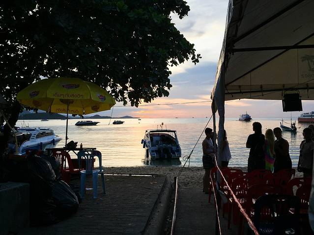 快艇嗖嗖嗖地开半小时就到达帕岸岛了,刚好夜幕降临。