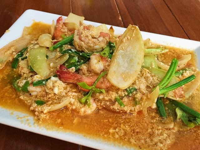Chawen street的海鲜泰餐和西餐对半。迫切地想要在苏梅岛落地的第一顿饭迅速打开味蕾,于是毫不犹豫选了泰餐。