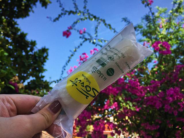 我本来选了椰子、番石榴、奇异果,结果被店主嫌弃了……说是这几种搭配起来会很奇怪,于是乖乖选了草莓+椰子。