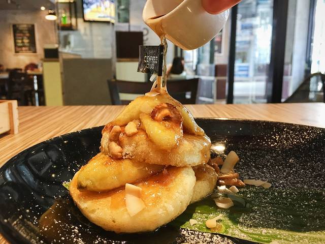 pancake也是不好吃……不是之前在街上吃到的那种香香的banana pancake,是传统的那种软软烂烂又甜又腻的,不推荐。