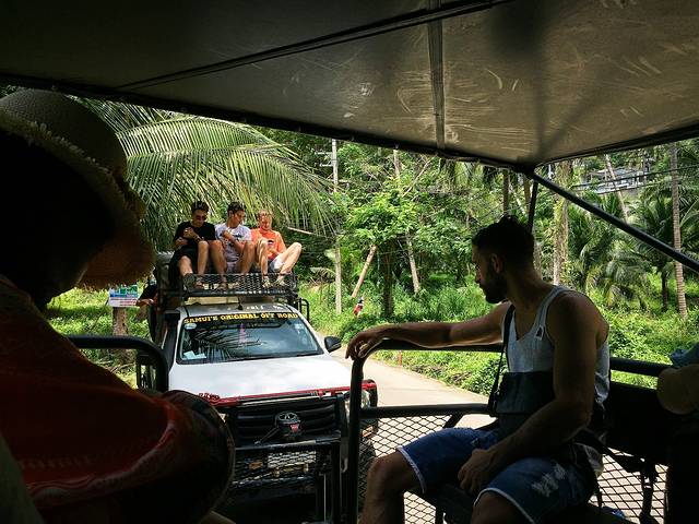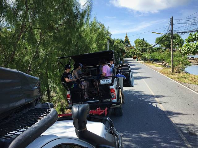 直接请酒店前台帮买代订往返接送车及船票,有几大公司在开展这个服务,我们酒店合作的是RS,往返200b一人。可以选择去程时间,我们选择的是5点左右出发的一班车。返回的船从凌晨1:00起每小时一班,可以自由选择回程时间。