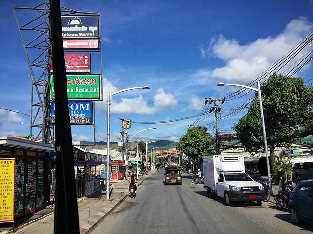 从chawen海滩出来,踏上苏梅岛上最热闹的chawen street.