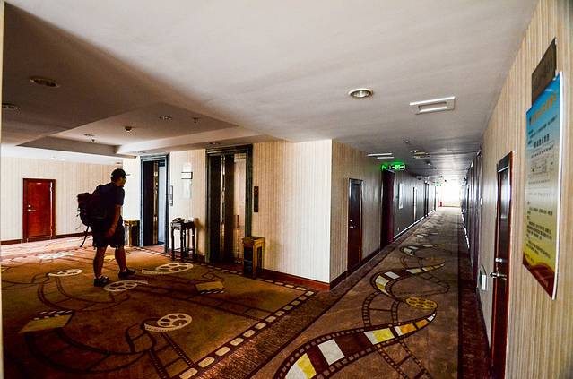 酒店的外观看起来很雄伟,在整个横店镇算是数一数二的高层建筑了。整栋大楼12层,其中第一层为公共区域,而2-12层则为客房。
