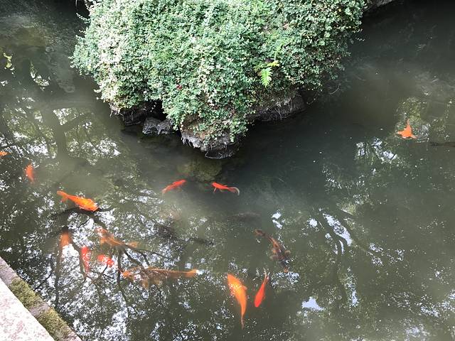 此池塘锦鲤畅游,水系链接外面的月湖。