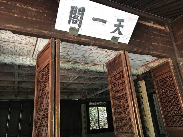 保存完好的天一阁藏书楼,从未发生过火灾原本就是一个奇迹,可能就是范老在取其名称用“天一生水”以水治火的愿望得以实现最好印证吧!的确,范老在防火上确实想了不少办法。此楼,共两层,一楼不放书,二楼是一个大开间用来放书,再次证明了他遵循以“一”生水的理念。这里的藏书达到7万多册。
