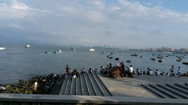 吃罢午饭回到酒店稍适休息,我们又粗发了。司机师傅告诉我们仙境源正在施工没必要去,听司机师傅的。第一站:望夫礁。一块礁石酷似一个渔妇抱着孩子眺望着大海,期盼着,这里有凄凉的传说,我就不在赘述。第二站:九丈崖。看名字就知道悬崖陡峭,九丈崖有一个鸥翅湾,海滩的形状像一只飞翔时的海鸥。第三站:月牙湾。月牙湾的石头是很有名的,都是那种被海水冲刷了多少年的圆圆的小石子,色彩斑斓。坐在岸边望着大海发呆,很是惬意。月牙湾的夏天是欢快热闹的,有海狮表演,还有海龟,据说摸海龟的背会有福气,这福气可不能溜走,于是花20元钱喂海龟,顺便摸摸海龟的背;有游泳🏊的,有玩海上各种项目的。如果带孩子来可以玩上一整天。