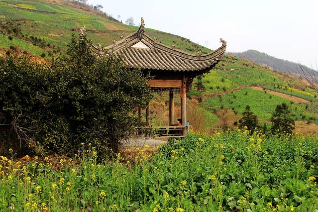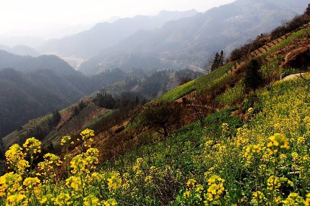 油菜花在石潭应该等同于婺源的江岭吧。这个时候离油菜花期还有一个月,因此整座山上就我们两个人。
