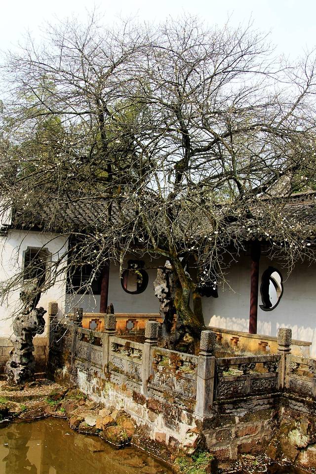 唐模古镇可以分成两部分,进景区的前一段是江南园林风格的建筑,古色古香的亭子临水而建,这个季节只有偶尔一树梅花独自芬芳。