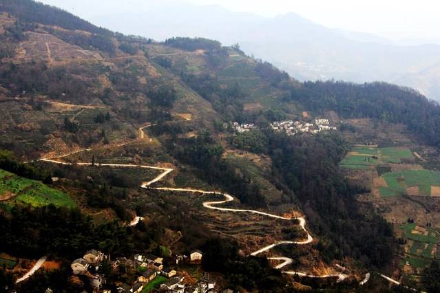 位于深渡镇的阳产土楼是一个没有开发的景点,免门票。那山路真是又窄又陡,交会车的时候都需要有一方提前靠边等着。路上碰上一群徒步上山的游客。我们暗自庆幸没有按之前的想法在这里租车,否则这还真是有点难度了。