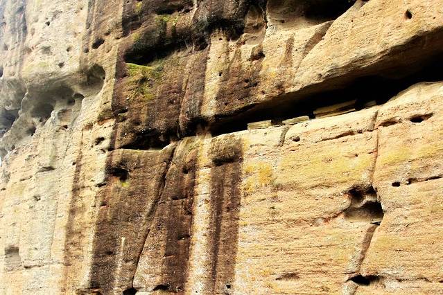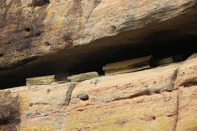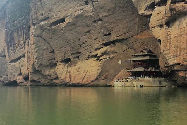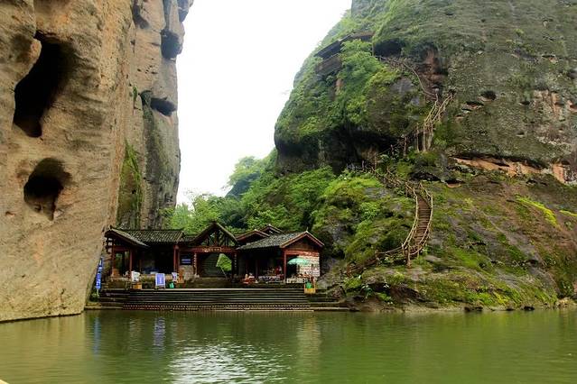 上了岸顺着那个楼梯爬上去的亭子可以近距离看悬棺。阶梯很窄而且又陡。