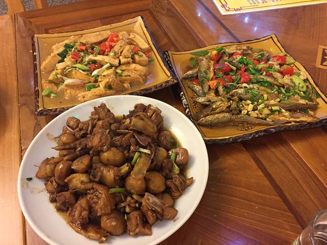 关于吃的,饭店老板介绍的特色就是板栗烧鸡,上清豆腐和泸溪鱼。好吃不好吃呢,来都来了,就尝尝吧。还有网上说的板栗粽,泸溪漂流的时候也买了一串。