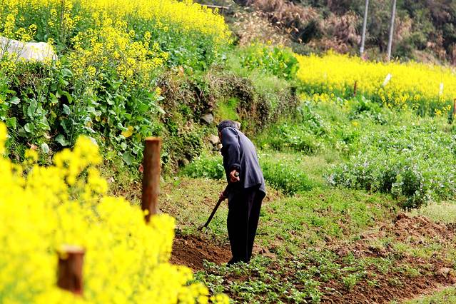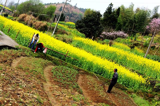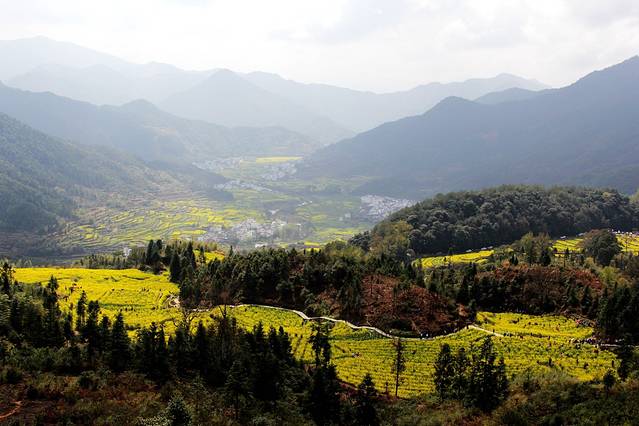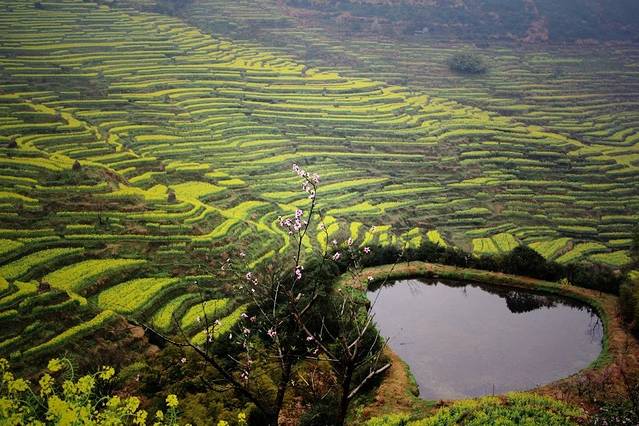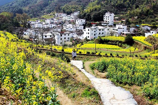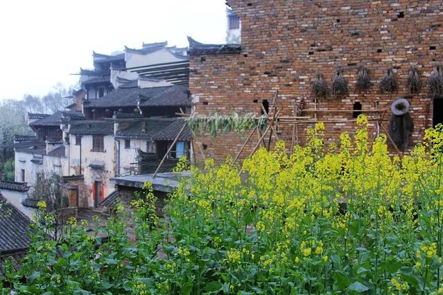 篁岭的油菜花田是螺旋形的,据说这是为了招徕游客而特意开辟的景点。我一直都觉得这些人为的景观虽然壮观,然而却缺少了岁月沉淀日积月累的味道。