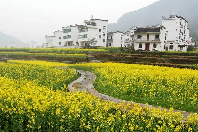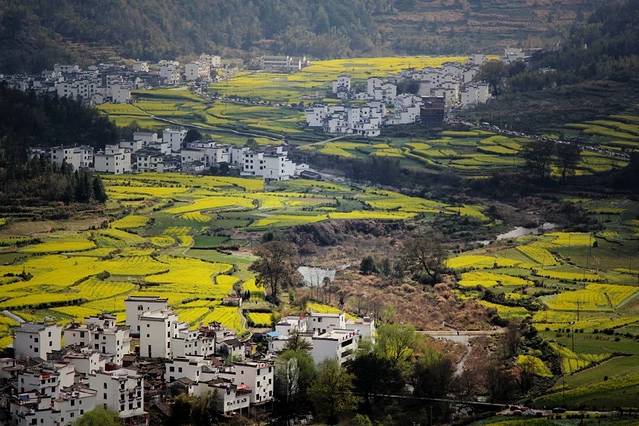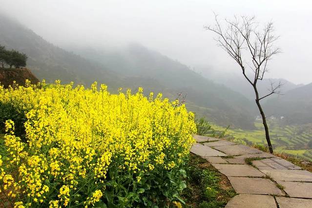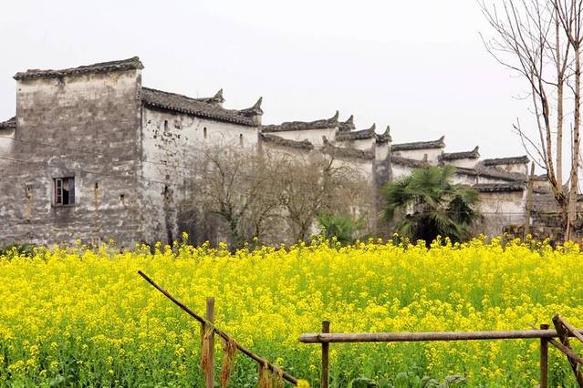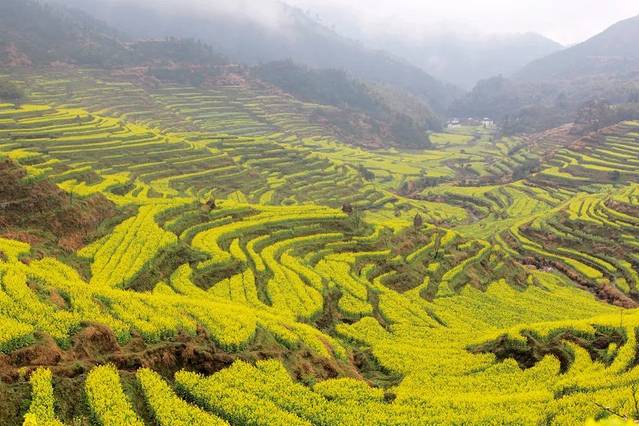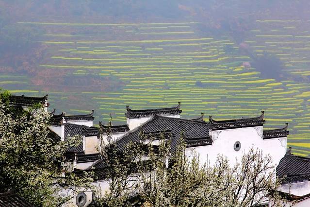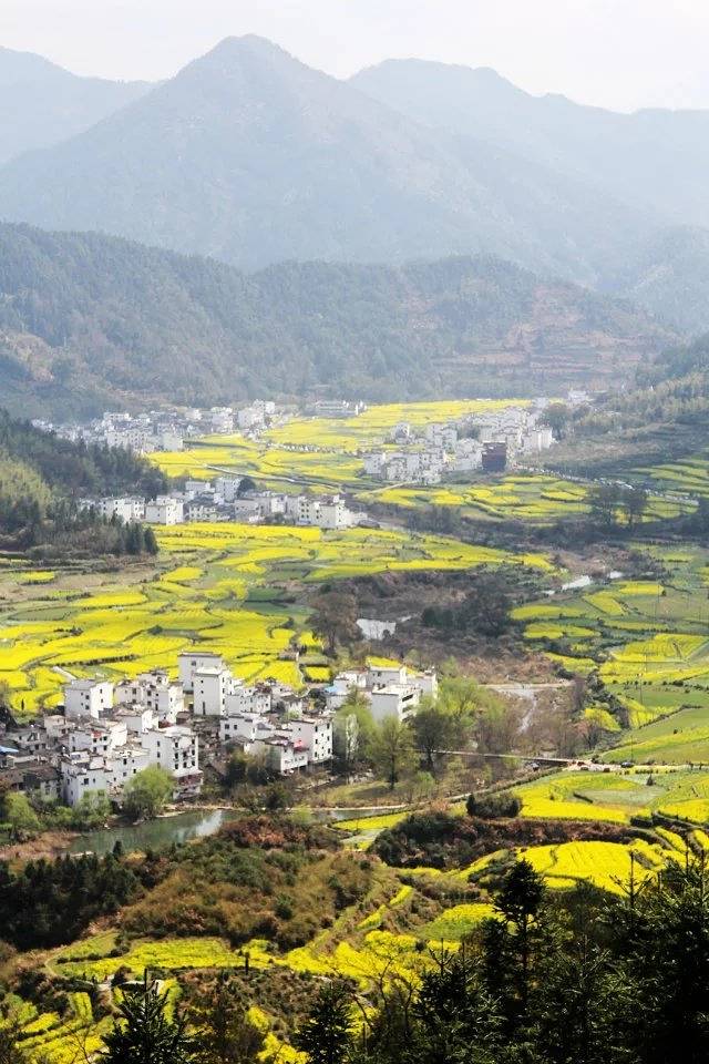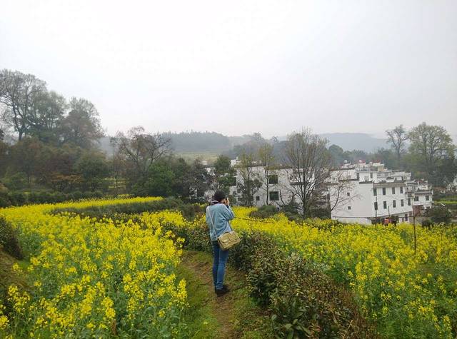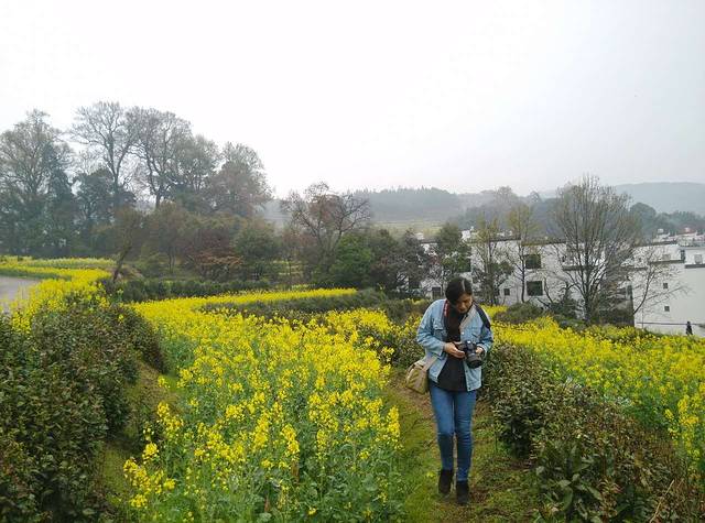 一年春去春又来,婺源之行一直在心里念念不忘,它们早已经在那里等候我们许久,怎会忍心让它成空呢?无边丝雨沾湿了油菜花的面颊,杨柳风揭开了轻似梦的春帷。当车开始行驶在婺源的路面时,一片一片的金黄色花海便映入眼帘,白墙乌瓦岁月斑驳,穿插着几棵桃红柳绿,倒映在雾气缭绕的幽幽绿水中,随意写意寥寥几笔就勾勒了它的美,怎会让人不迷醉?如此美景视角不同便有不同的画幅展现,若站在高处放眼望去,梯田上开满了金黄色油菜花再点缀着青山、绿水、粉墙、黛瓦,尽收眼底美不胜收。若沿着台阶一直往下便如同置身在花海里,花从眼边一直开到了天边,满眼的金黄,戏蝶流连,飞蜂轻舞,梦里也不曾的美。我们从江岭花海到了篁岭的天街再走到小桥流水的李坑然后到了彩虹桥的田间小路最后到了思溪延村的深深小巷,四天之行我们就是行走在这样美丽的画卷。