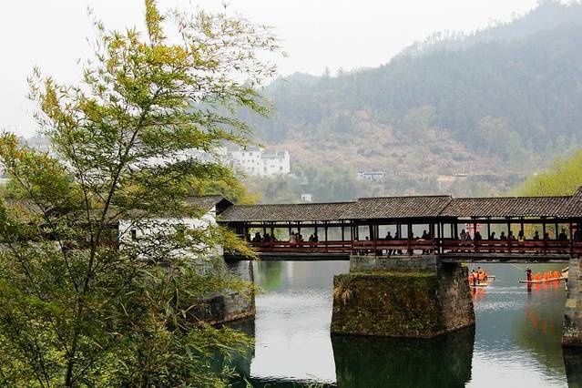 从婺源县城到清华镇的彩虹桥景区只需要半个多小时的车程。彩虹桥我感觉就是一个鸡肋一样的景点,尽管它的名气挺大的。