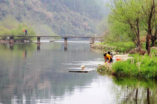 汪口村最为出名是俞氏宗祠,而最美的却是那条清澈的小河。这里游客很少,我们踩着河边的鹅卵石慢慢悠悠地闲逛,乘坐竹筏漂流的游客和戏水的鸭子自得其乐,互不相扰。