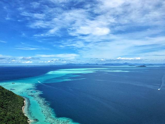 虽然说在网上看到过很多仙本那大海的图片 但是远远的看过来还是被它的美给惊艳到了 真的和网上的图片没差 我随手一拍没加任何滤镜 放眼望去海底全是蓝色的海星 突然心情大好