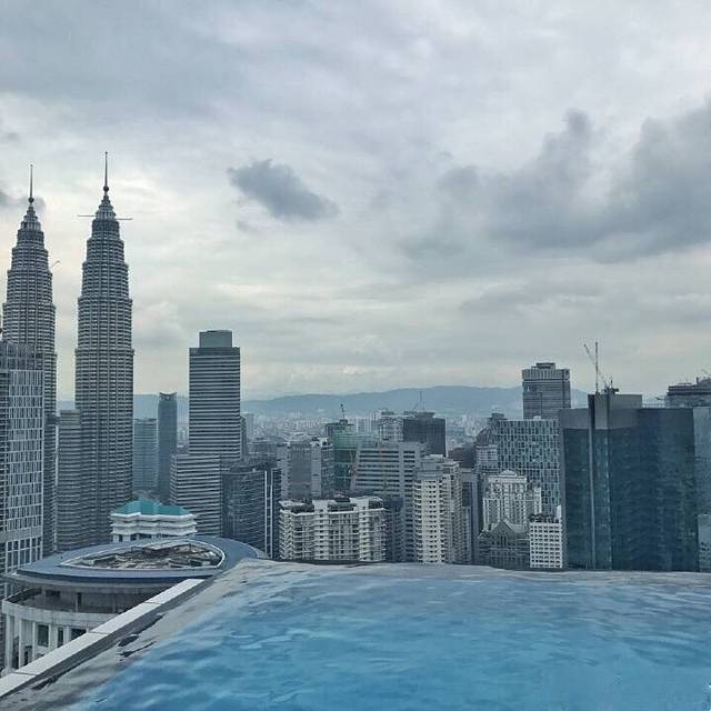 早起就先到顶楼拍照拉 顶楼的无边泳池 可以看到双子星和吉隆坡塔两大地标性建筑 应该也算是个网红酒店了