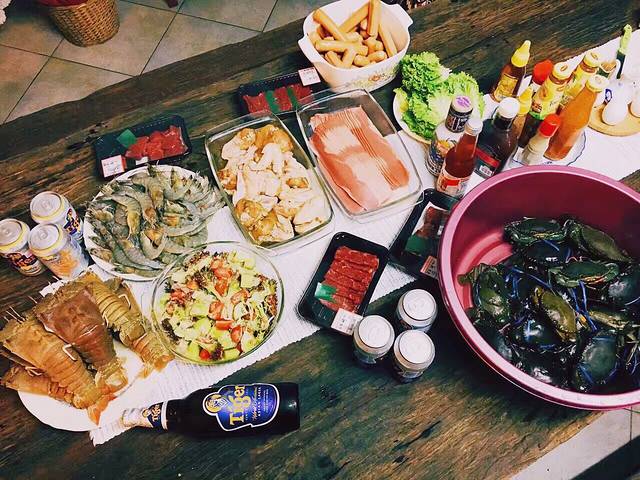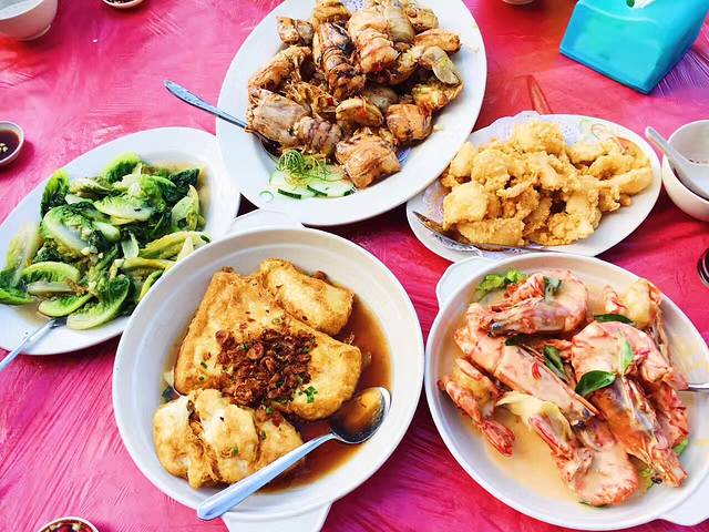 然后坐了车去仙本那镇上 机场去镇上大概一个多小时 先去酒店办理了手续 想去网红店肥妈吃海鲜 无奈网红店关门比较早 9点多就关门了 地陪带我们去吃了海中宝这家 味道也蛮赞的 可能是我们真的饿了 几个人大概吃了400多马币 图片不是全部菜(我们等不及了先随便拍了一张就吃了哈哈哈哈哈哈哈)