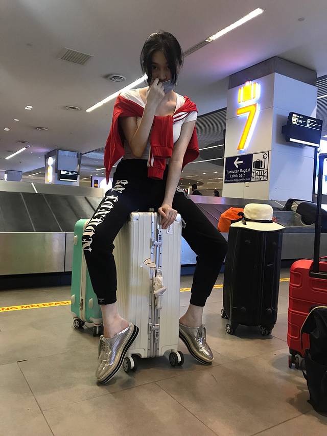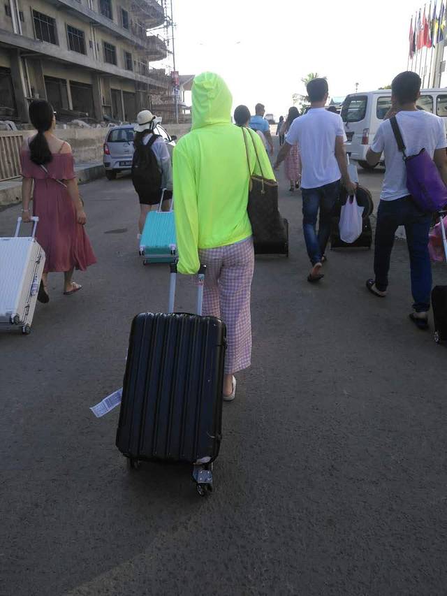 然后我穿着睡裤 防晒衣 拖着我还剩2个轮子的箱子去办理了手续 就去坐船了😂 心酸的背影