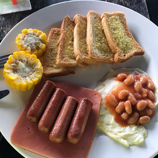 拍完照就粗门随便找了一家店吃早餐 郁闷的是菜单全是英文 然后我特别机智 看到老外点了一个我就说the same 哈哈哈哈简直太机智了 然后上来难吃到哭!
