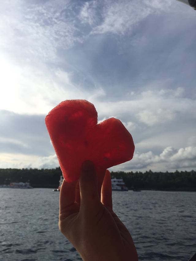 回来的快艇上给我们吃的西瓜都是💗,说好的海上夕阳没看成……遗憾,因为回去路上看到今天的夕阳超级超级美!