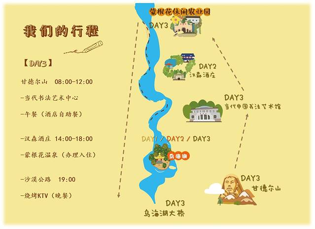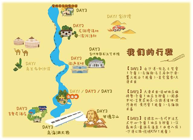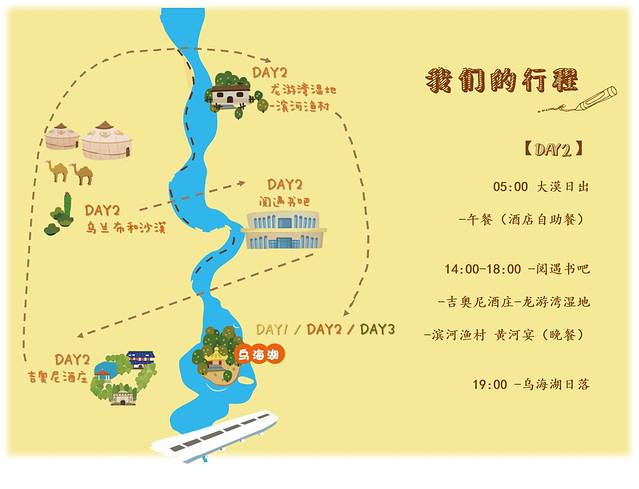 地点/乌海湖+龙游湾湿地+吉奥尼酒庄+阅遇书吧