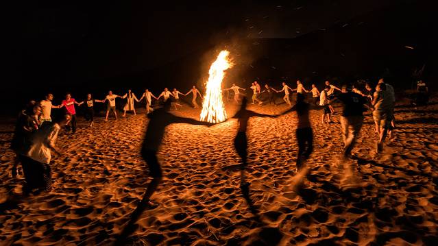 入夜,起篝火,远方而来的朋友啊,放下与外世的羁绊,让沙漠的星夜把你环绕,跳舞吧!歌唱吧! 热情的乌海人已经架起烤架唱起歌,用冉冉的火光,只为把你点燃。