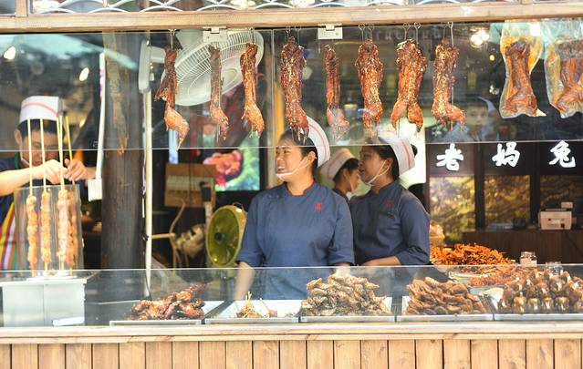 如我们烤兔十分的美味哟,四川人民每年要吃掉的兔兔不计其数,如果你受不了兔兔,那么可以尝尝鸭头、乐山钵钵鸡、特有的老成都牛肉、还有豌豆粑。不知道豌豆粑其他地方没有没,小时候超级爱吃,非常的香脆。