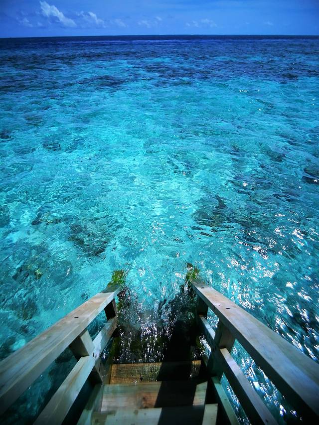 岛上浮潜最好的位置,服务员会介绍说在豪华沙屋前的区域。但实际我感觉最好的地方是豪华水屋附近。那里珊瑚多,鱼多,游几十米外就是深沟,那里有很多鱼群,还看到鲨鱼和海龟。不过游到深沟那里还是有些让人害怕的。