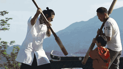 问奶奶借了做糍粑的工具,她还把儿子叫了回来帮我,做糍粑可是个力气活。
